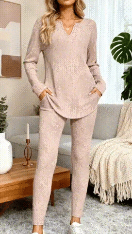 Bu günlük takım, sonbahar ve kış aylarında tüm gün konfor için yumuşak, yüksek kaliteli esnek örme kumaştan üretilmiştir ve vücuda oturan, hafif, cilt dostu, nefes alabilen ve oldukça elastik bir malzeme sunar.