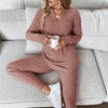 Kadınlar için uzun kollu rahat takım, nervürlü peluş örme pantolon