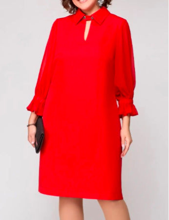 Paket içeriği: 1 * Şık Kadın Düz Renk Çentikli Yaka Elbise