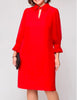 Şık Fener Kollar: Göz alıcı yedi çeyrek uzunluktaki fener kollar, bu elbisenin moda cazibesini vurgulamak için eğlenceli ve sofistike bir görünüm katıyor..