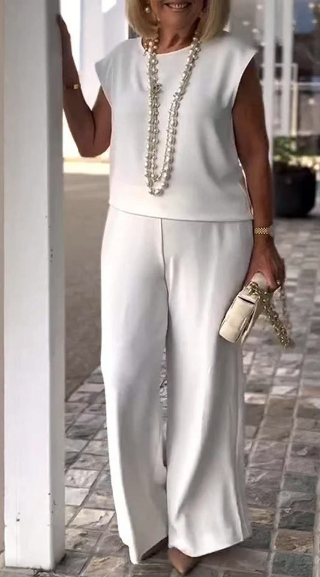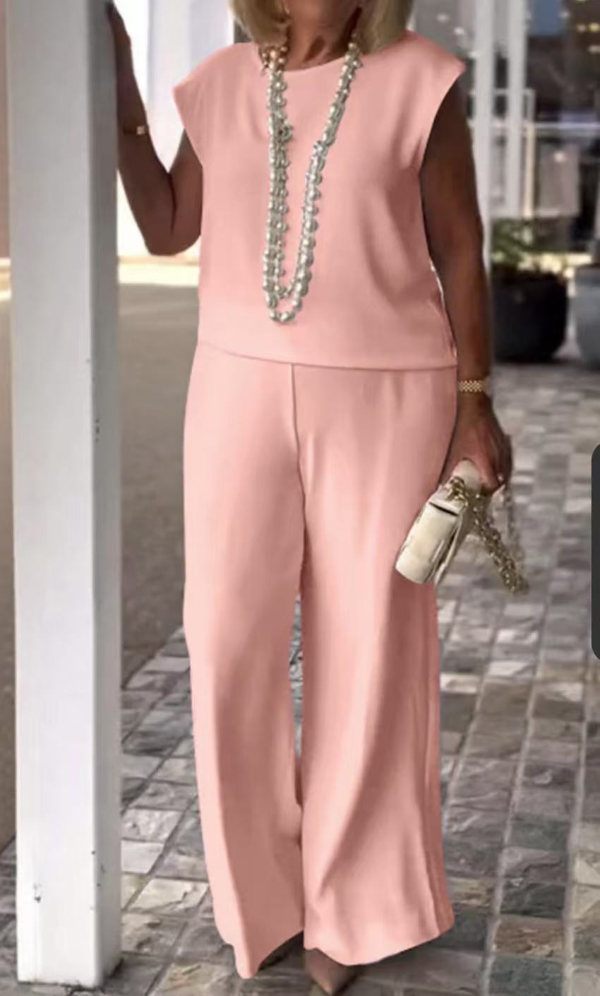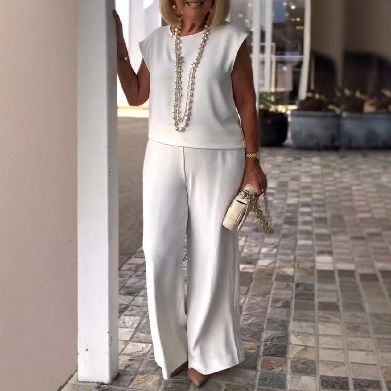 Kadınlar için kolsuz üst ve yuvarlak yakalı pantolon