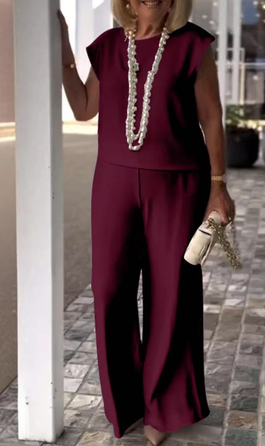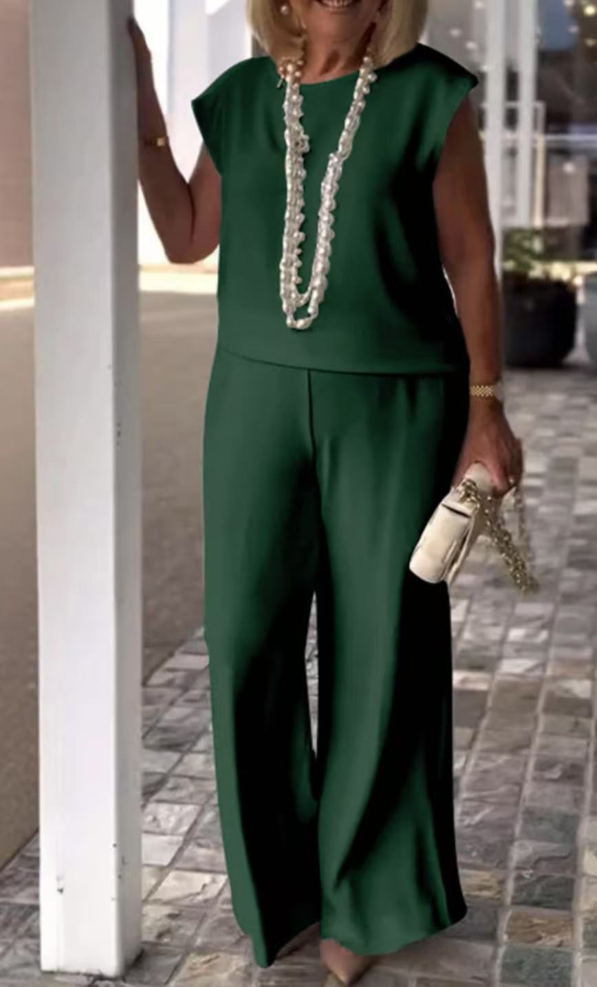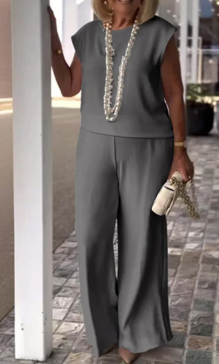 Kadınlar için kolsuz üst ve yuvarlak yakalı pantolon