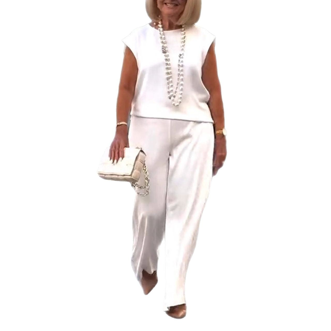 ÇOK YÖNLÜ GÜNLÜK TASARIM: Bu set, hem şık hem de işlevsel, zamansız, kolsuz, yuvarlak yakalı bir üst ve uyumlu, rahat bir pantolondan oluşur. Rahat hafta sonları, evde dinlenmek veya günlük işlerinizi halletmek için mükemmeldir.