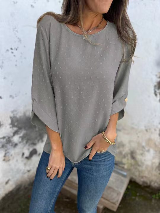 Kadınlar için rahat yuvarlak yakalı jakarlı üst