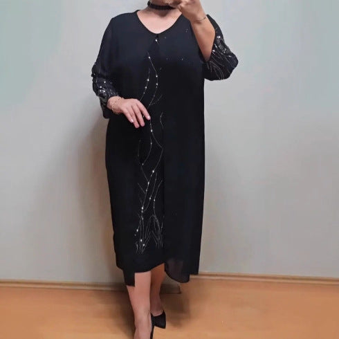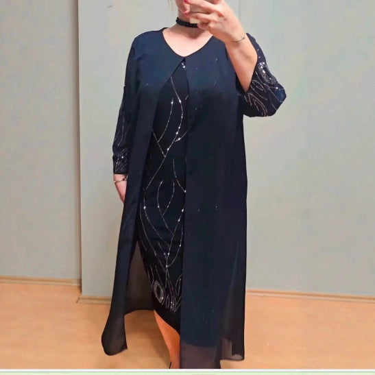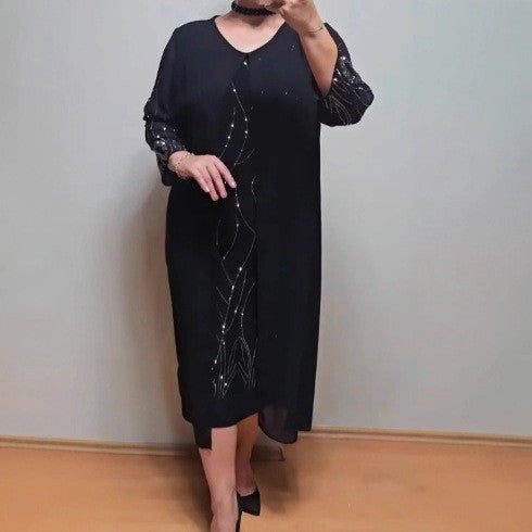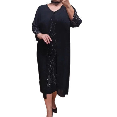 Şifon taklit kumaştan yapılmış güzel iki parçalı elbise