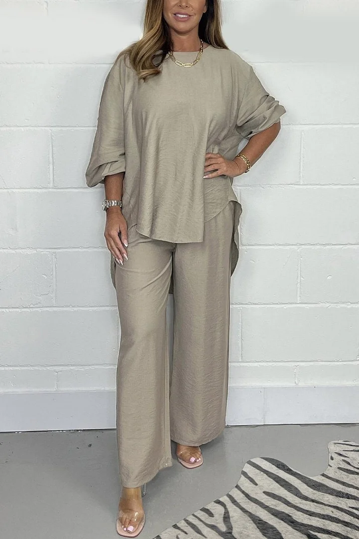 Pamuk ve ketenden yuvarlak yakalı günlük takım elbise