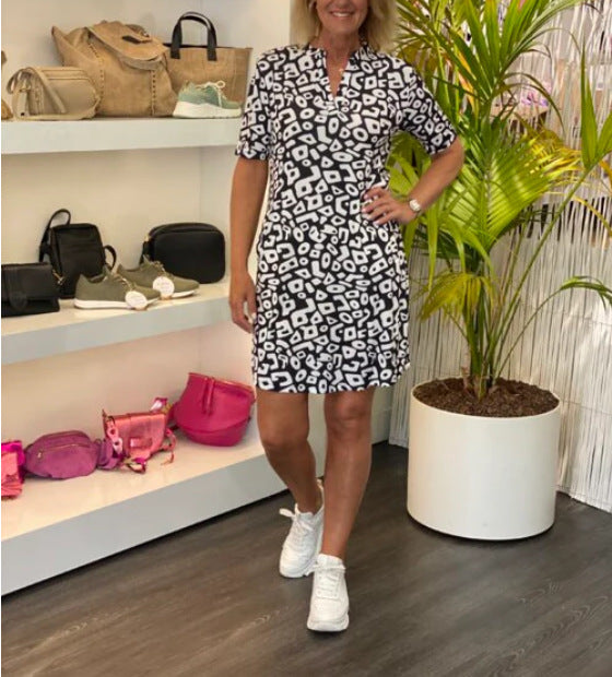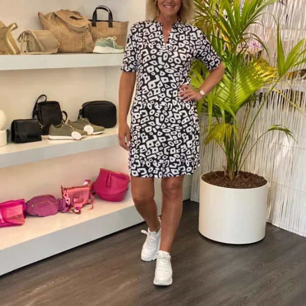 Paket içeriği: 1 * Kadın Günlük Kısa Kollu V Yaka Baskılı Elbise
