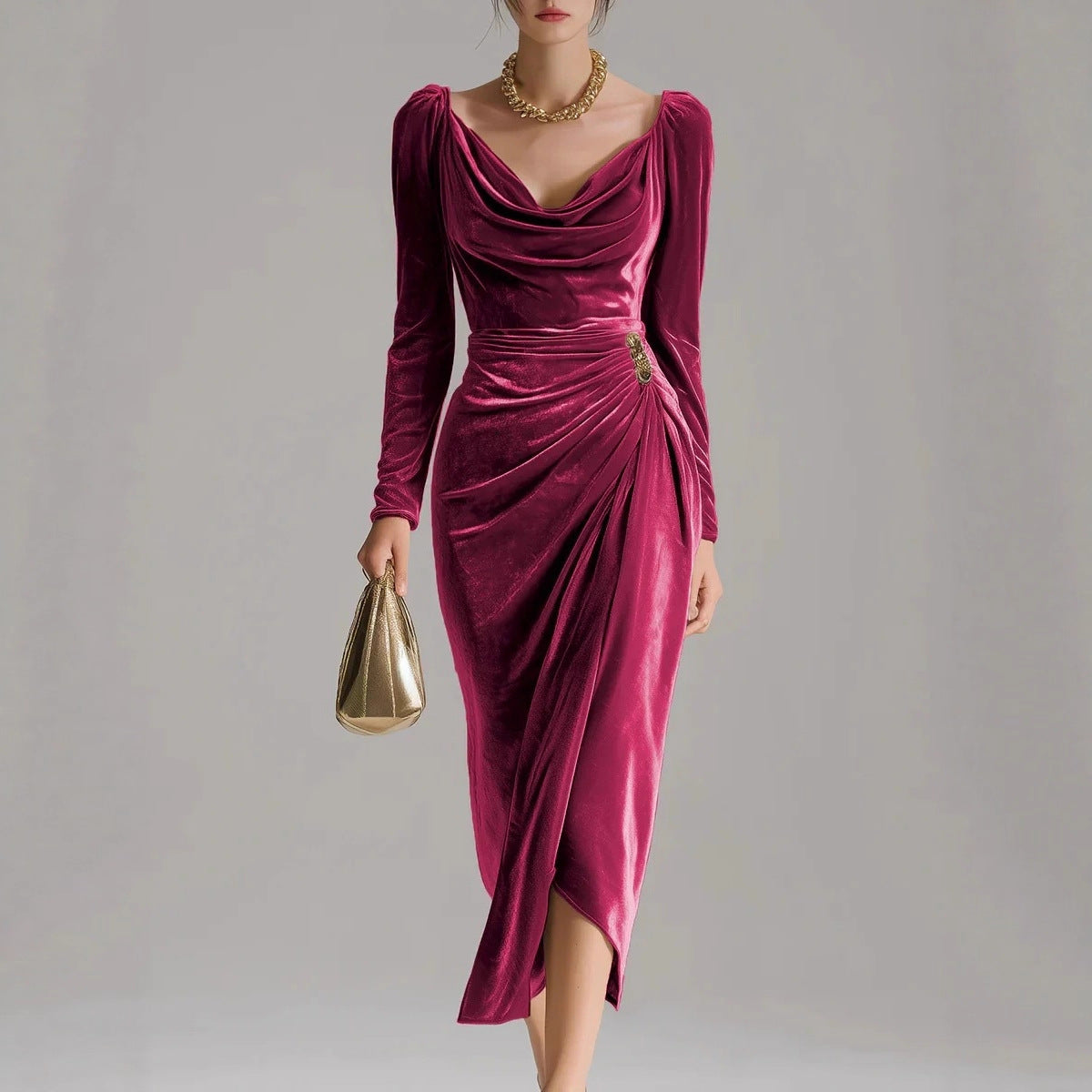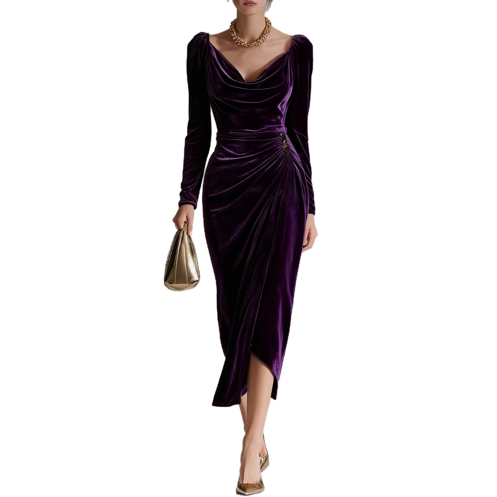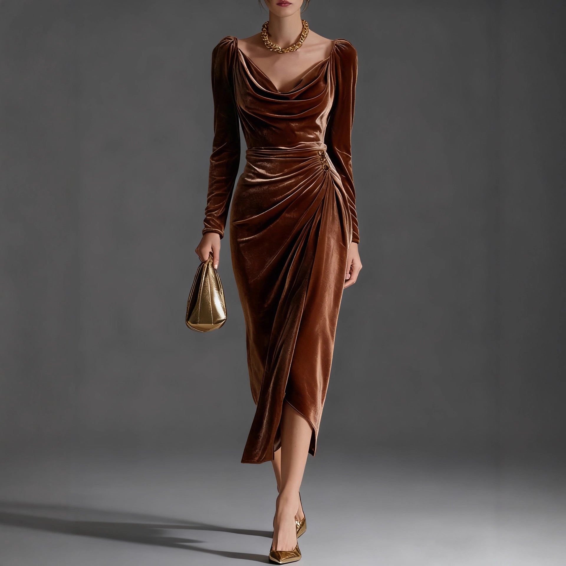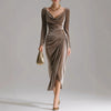 Kadınlar için şık, retro, lüks, V yakalı, uzun elbise