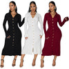 Kadınlar için V yakalı, düğmeli sonbahar elbisesi
