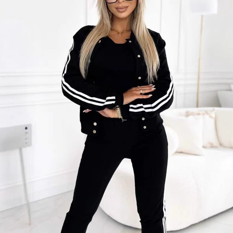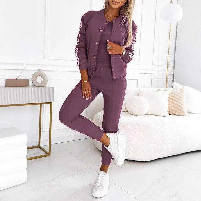 Kadınlar için beyzbol ceketi ve pantolonundan oluşan üç parçalı set
