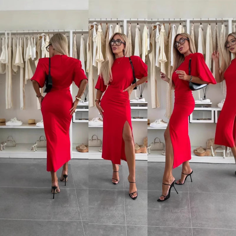 Paket içeriği: 1* Pamuklu Kısa Kollu Yırtmaçlı Midi Elbise
