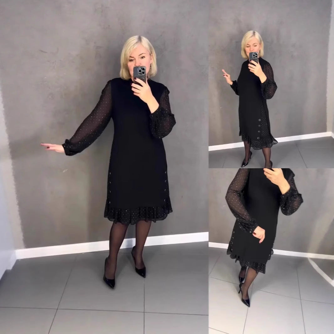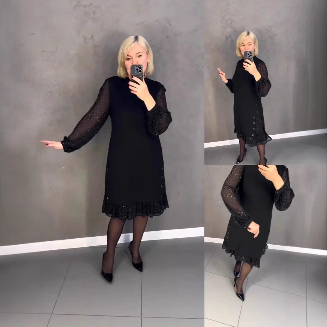 Paket içeriği: 1 * Kadın Düz Renk Yuvarlak Yaka Yapay Elmaslı Elbise
