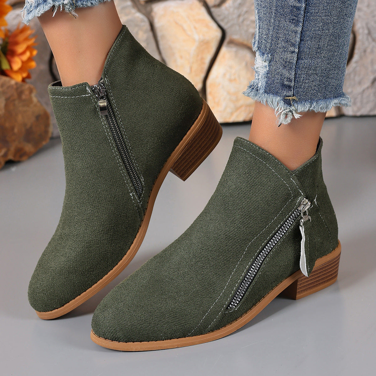 - Yanlarda çift fermuarlı, düşük kesimli, günlük bilekte botlar