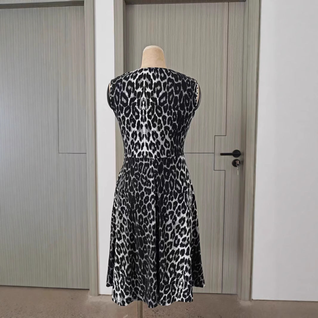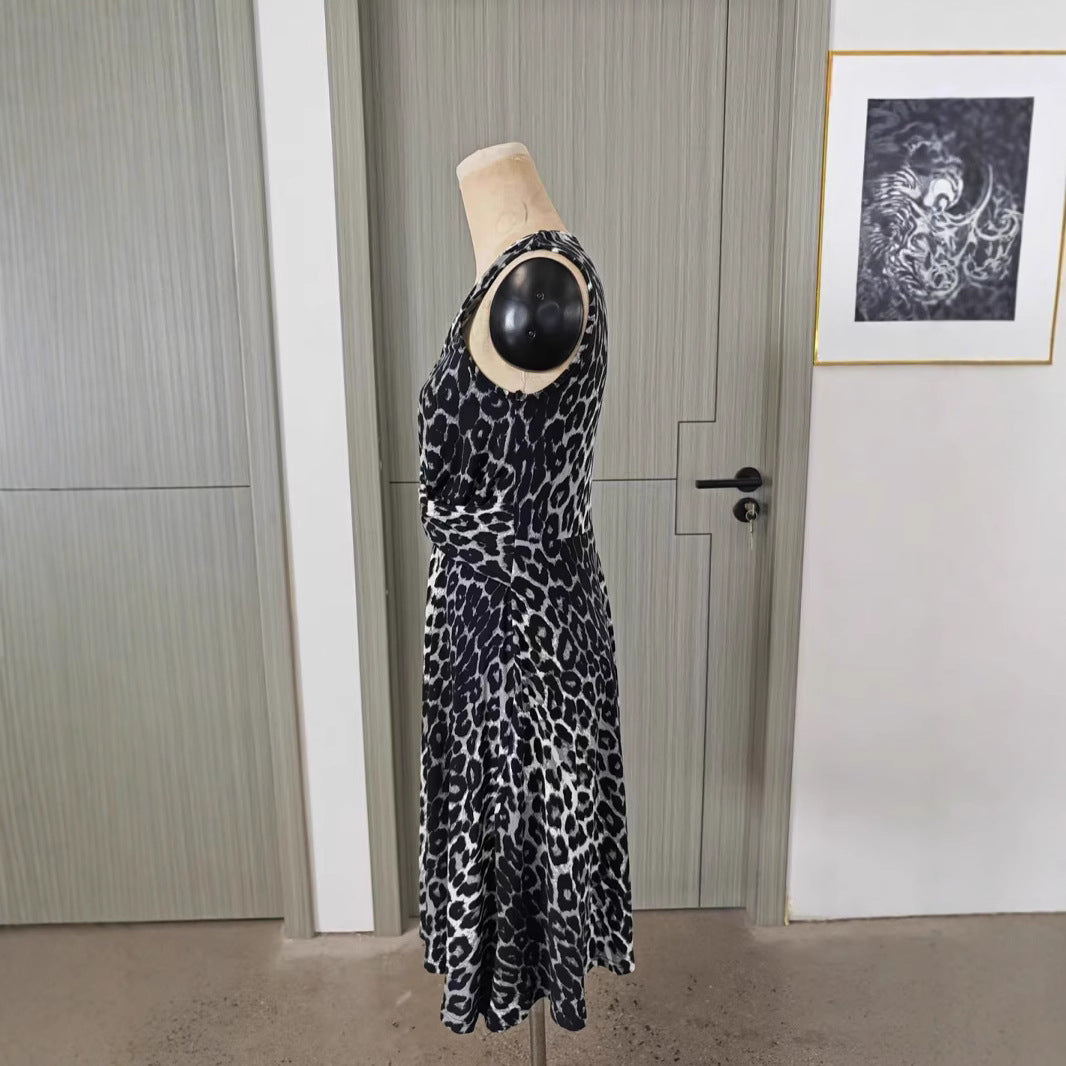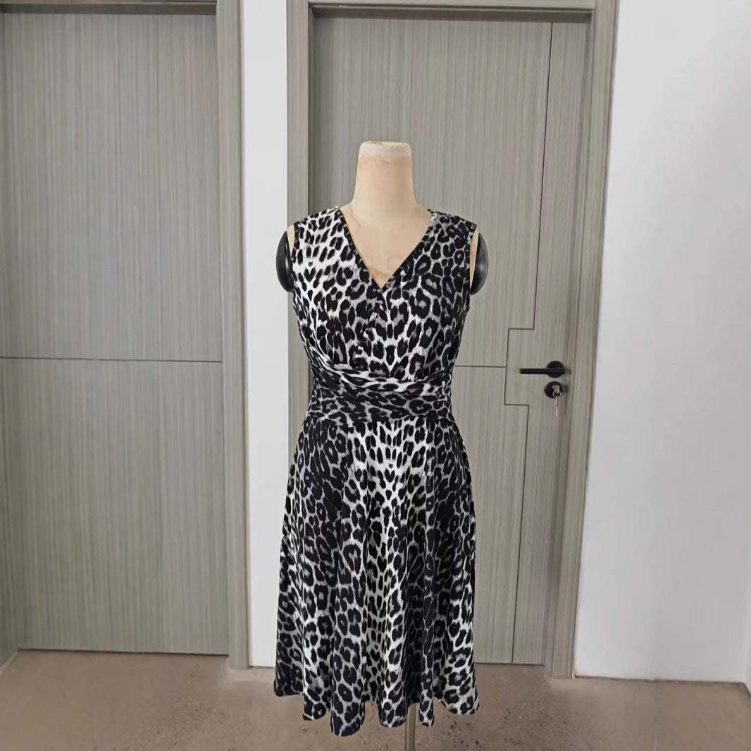 V yakalı ve çapraz bel detaylı leopar desenli elbise