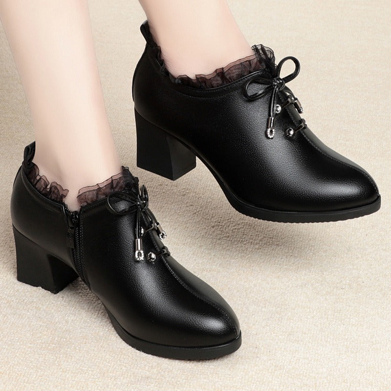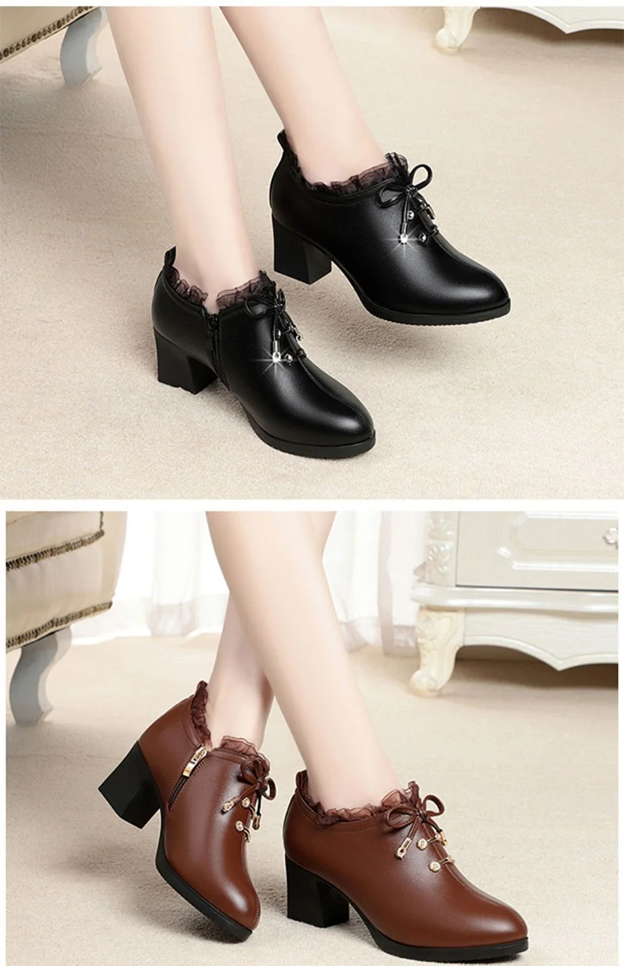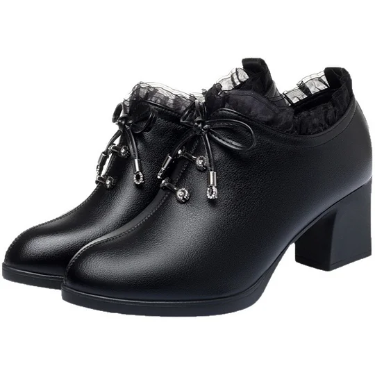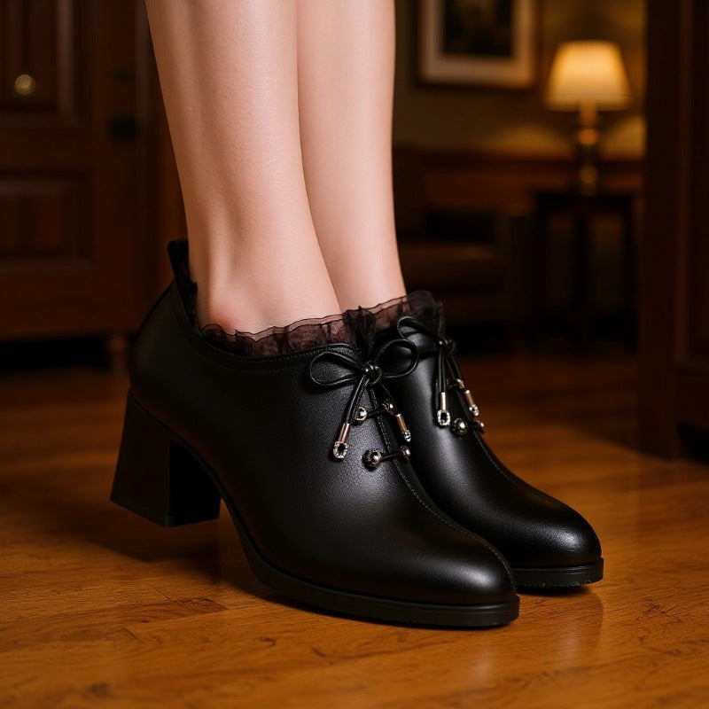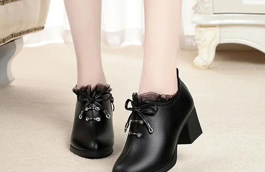 Son kampanya - yumuşak tabanlı ve kalın topuklu kadın deri bağcıklı ayakkabılarda