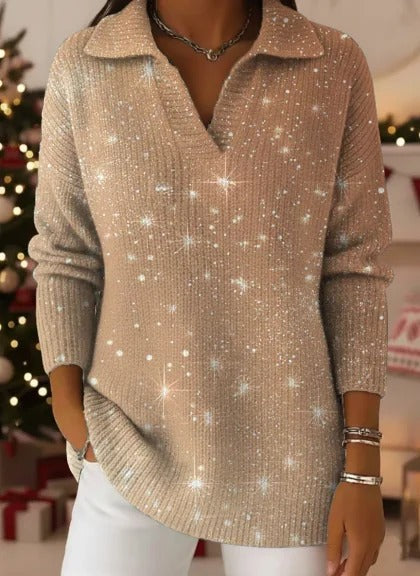 Degrade yıldızlı gökyüzü desenine sahip rüya gibi balıkçı yaka örgü bluz