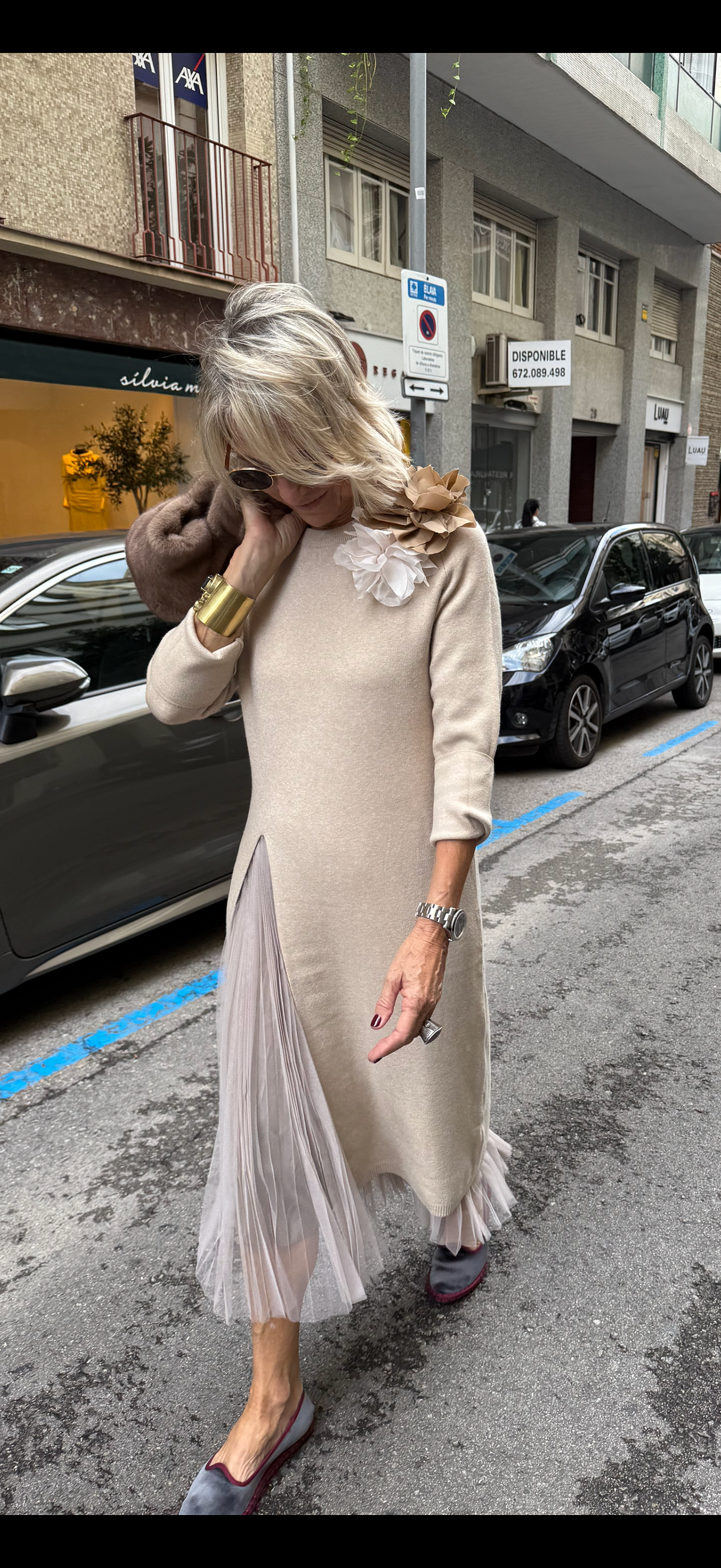 Sade elbise teninize rahat oturur ve dış tül eteği katmanlı, dökümlü ve esnek bir görünüm için dolgulu askılara sahiptir. Uzun bir kazakla kombinlendiğinde sıcak ve yumuşaktır. Yuvarlak yaka boynu ince gösterir ve uzun kollar sizi ağırlaştırmadan sıcaklık sağlar. Yan yırtmaçlar seksi bir dokunuş katar ve hareket halindeyken inanılmaz şık bir görünüm sunar.