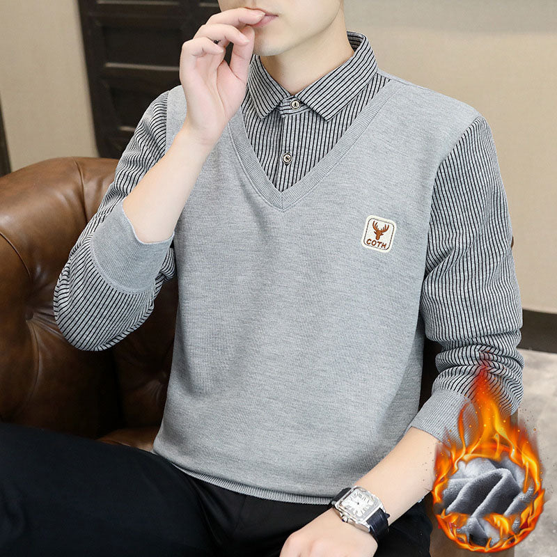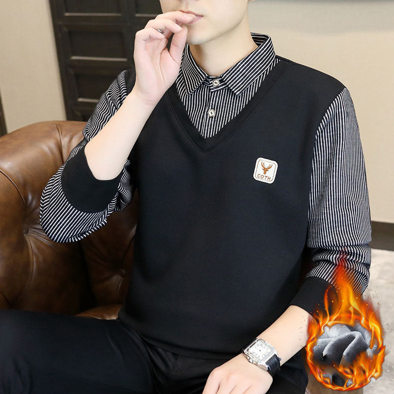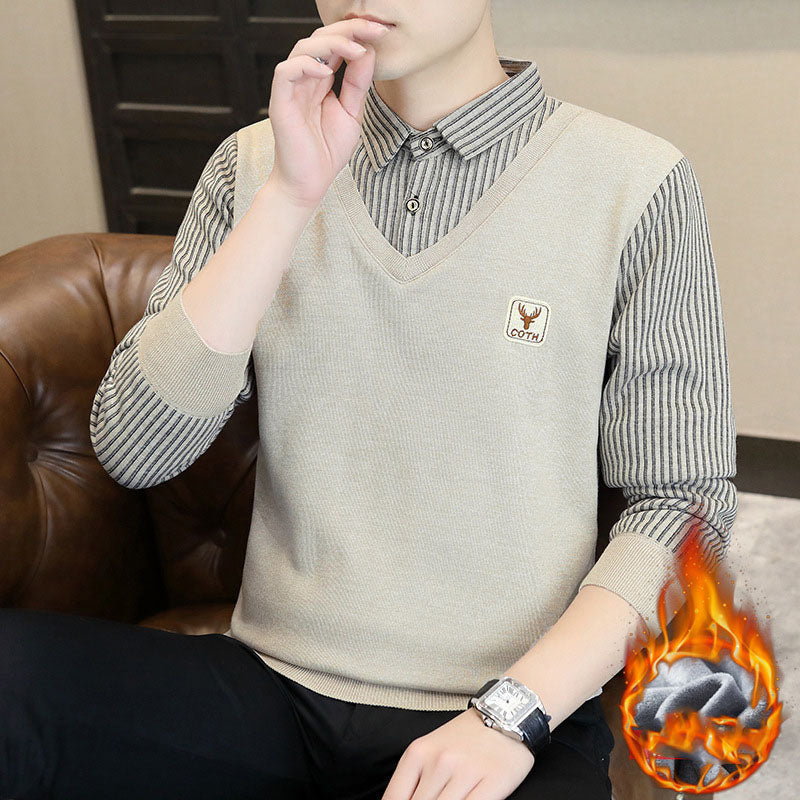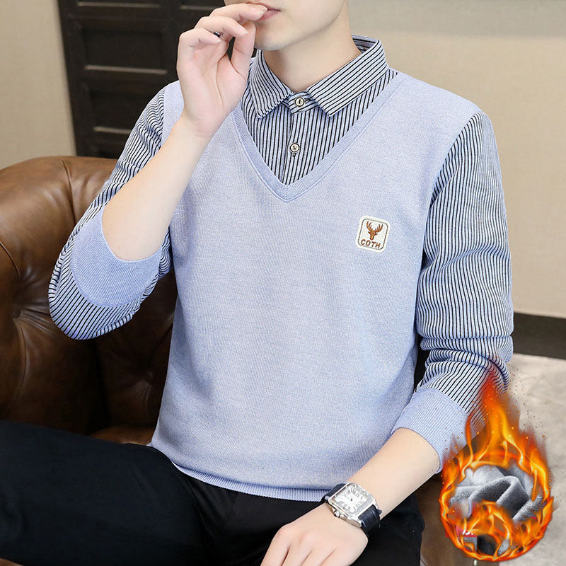 Erkek gömlek yakalı polar astarlı sıcak kazak