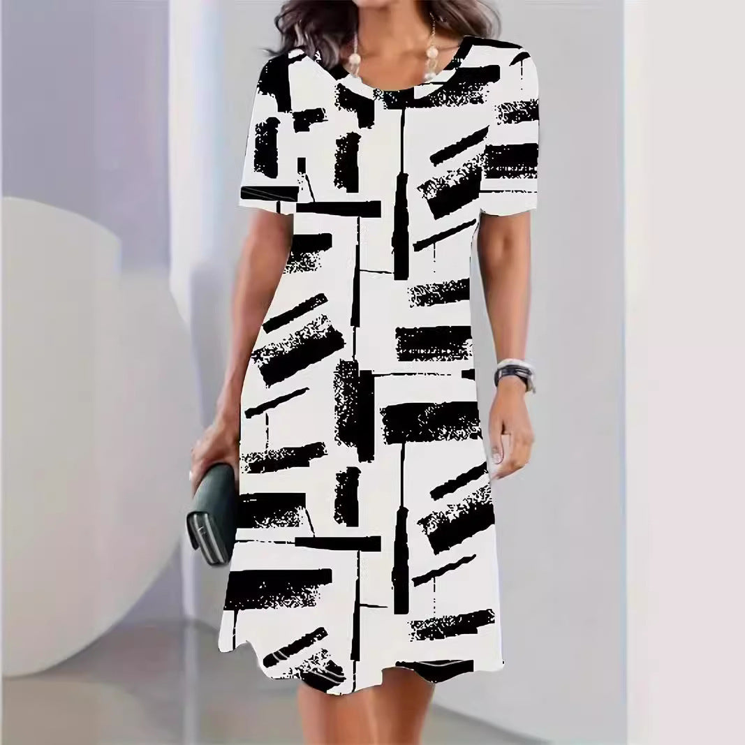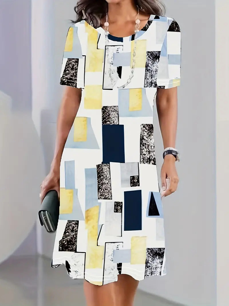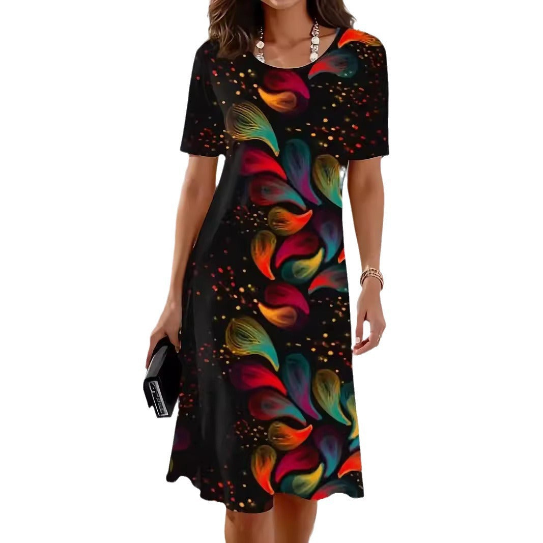 Bu elbise, günlük gardırobunuza kişilik katan canlı ancak dengeli bir kesime sahiptir. Tüm vücudu saran deseni görsel açıdan ilgi çekicidir ve rahat akşam gezileri, hafta sonu alışverişleri veya günlük buluşmalar için mükemmeldir.