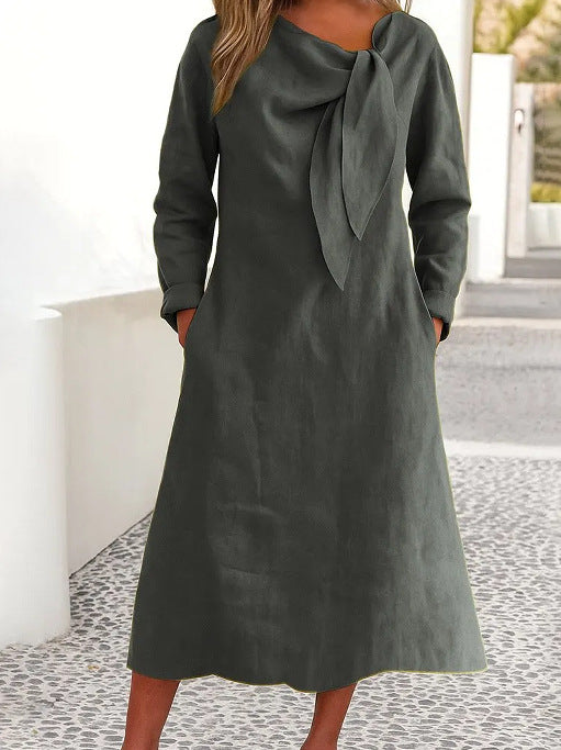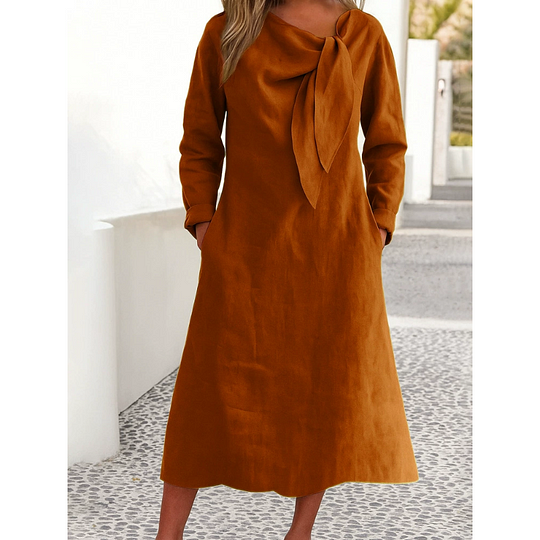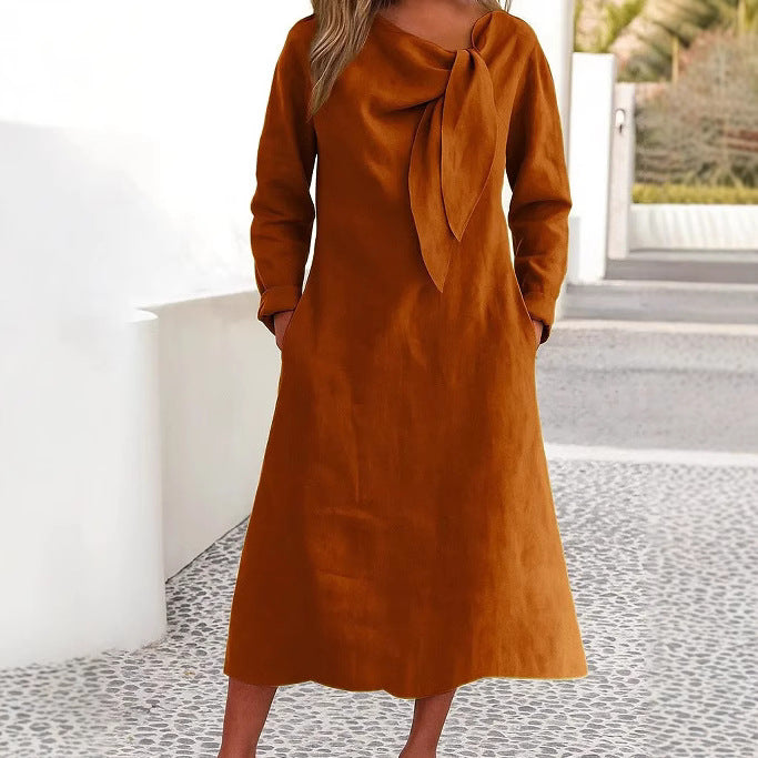 Uzun kollu ve yuvarlak yakalı düz elbise