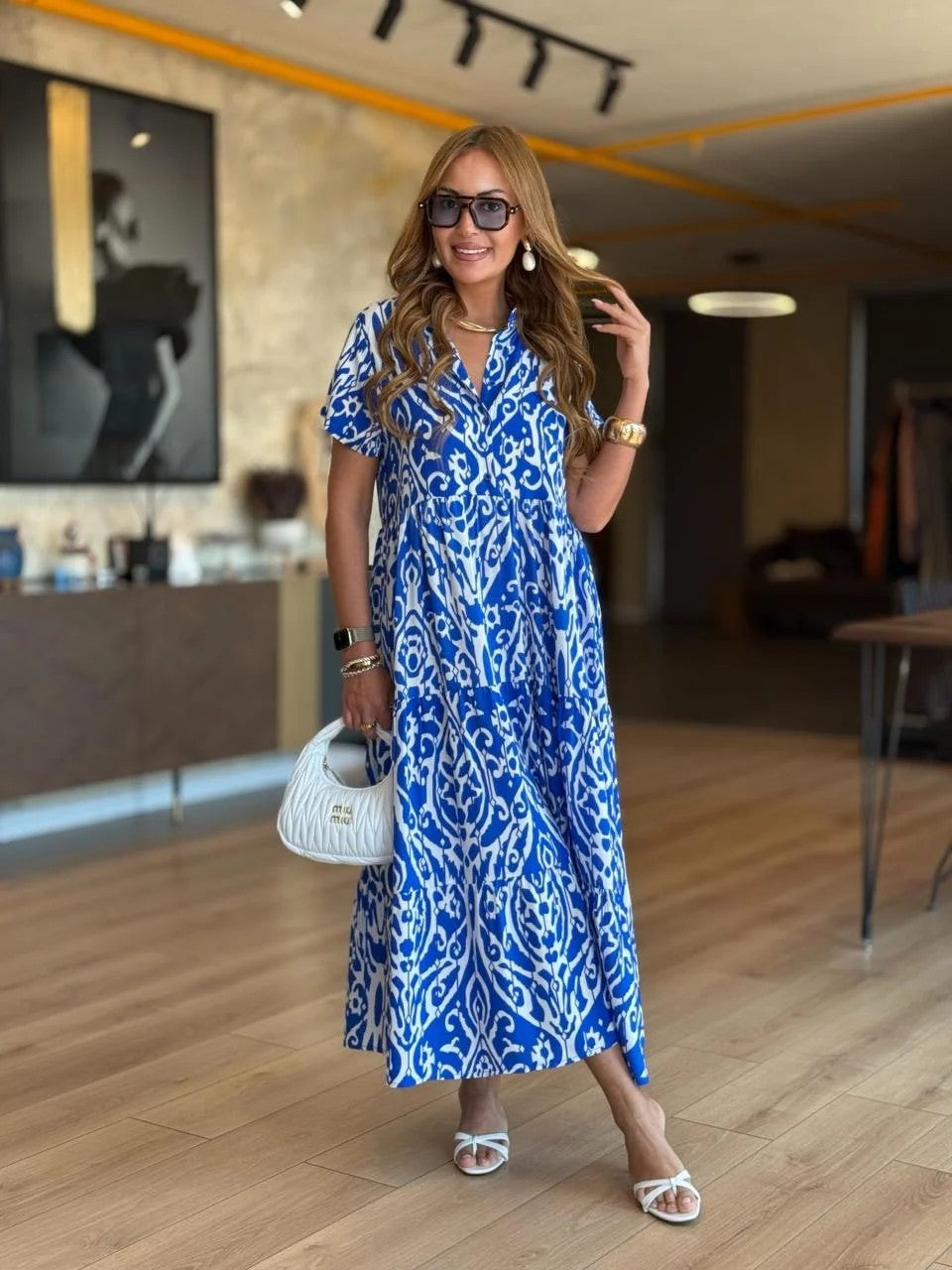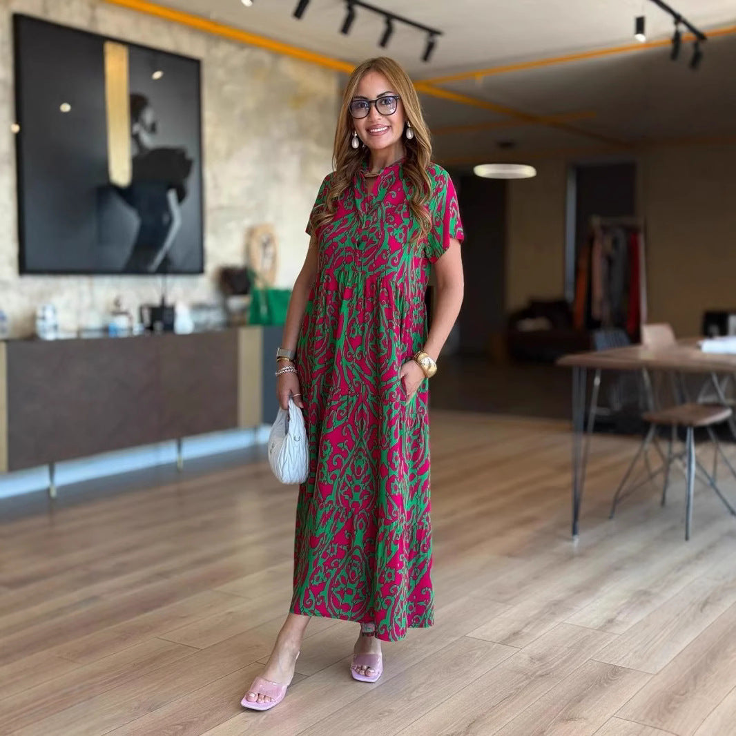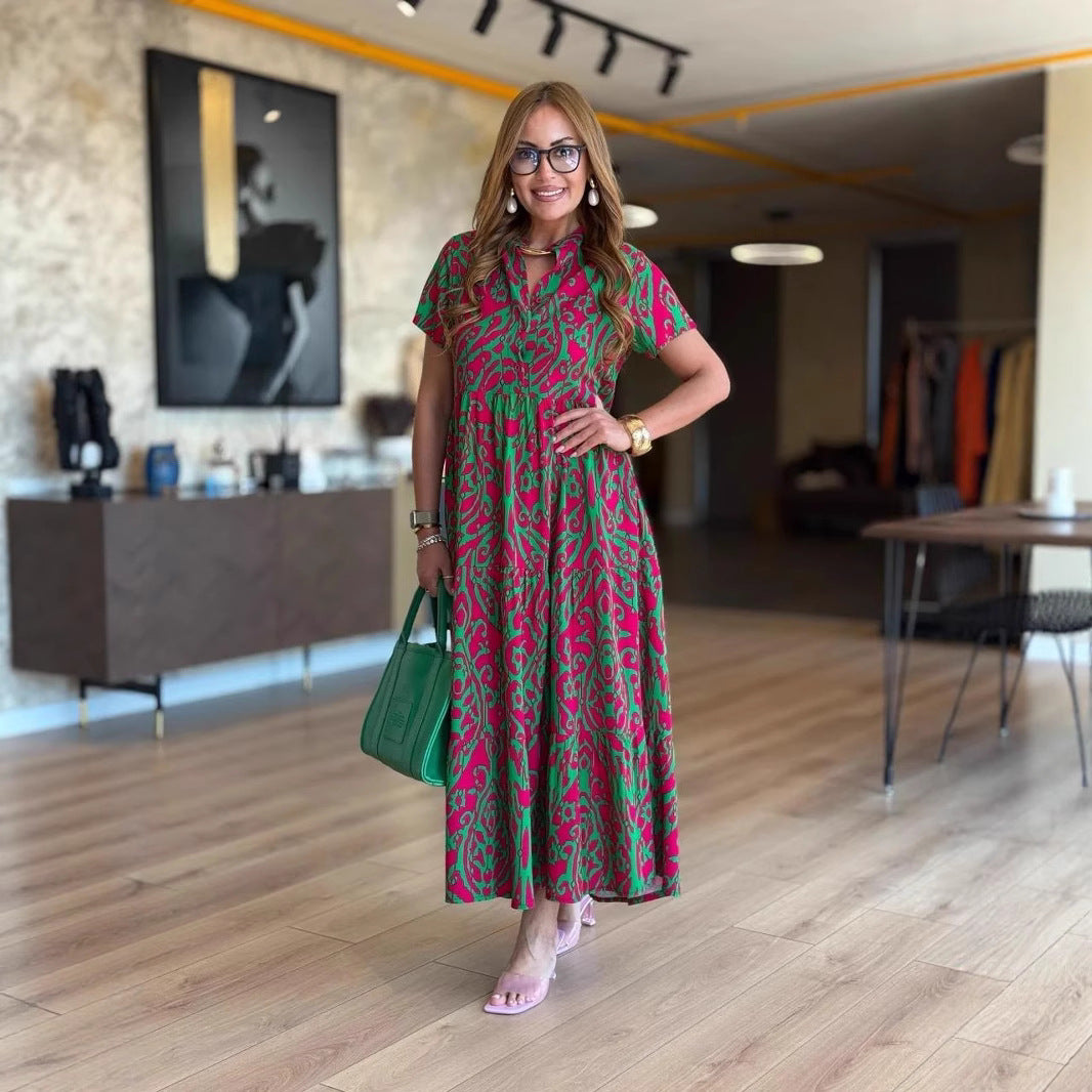 Günlük Desen Tasarımı: Bu elbise, günlük gardırobunuza kişilik katan canlı ve dengeli bir desene sahiptir. Çok yönlü deseni görsel çekicilik katarak günlük geziler, hafta sonu işleri veya rahat sosyal etkinlikler için mükemmeldir.