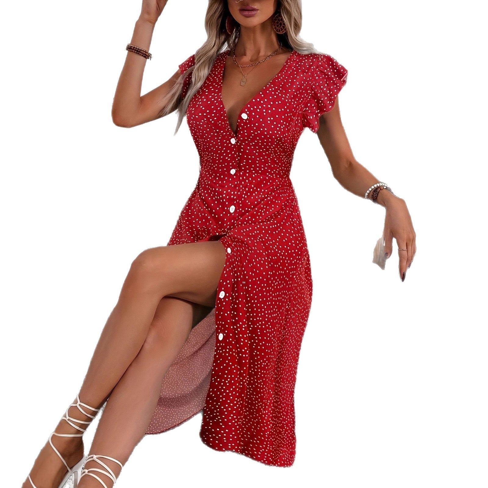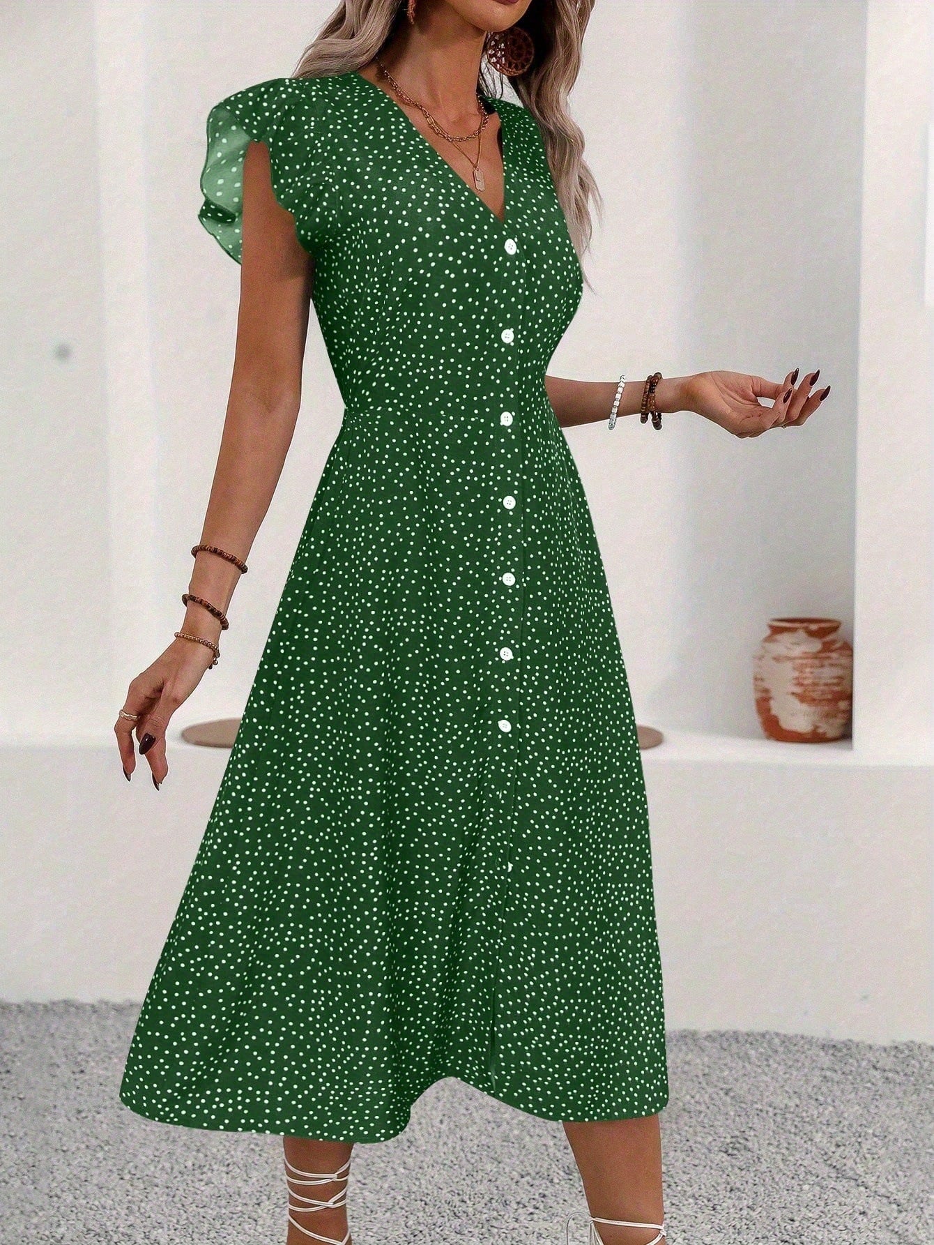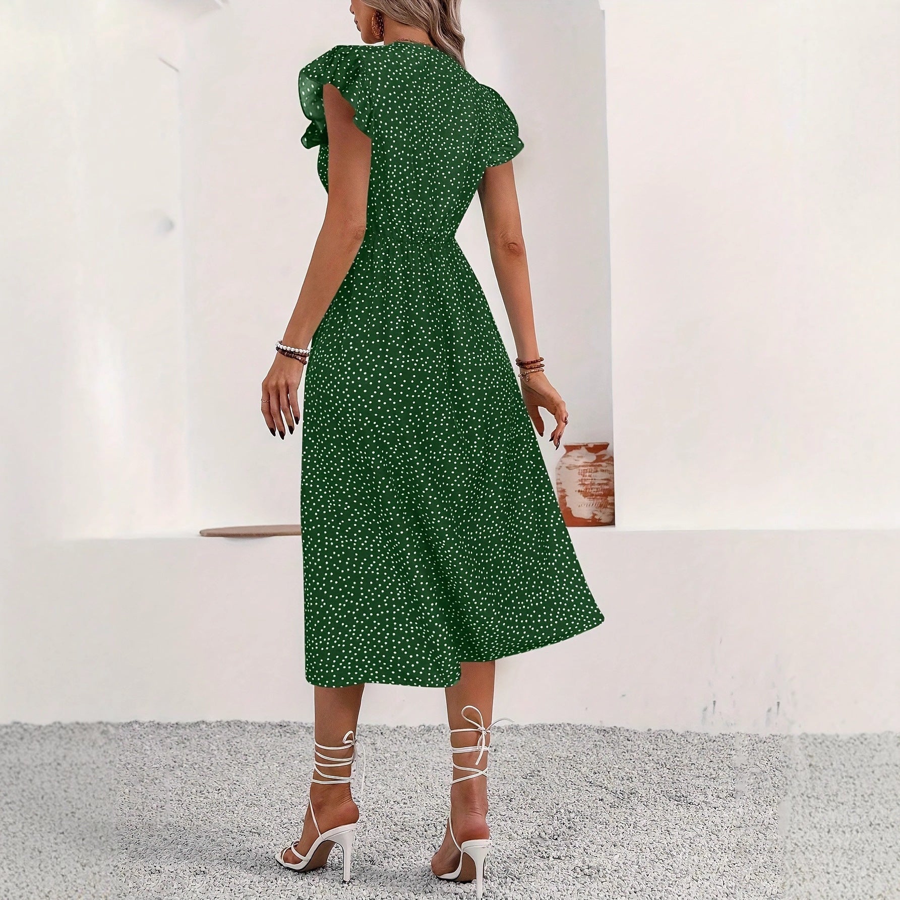 ZARVINO™8668|👗Kadınlar için fırfırlı puantiyeli V yakalı ve kemerli maksi elbise