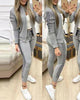 Günlük Kullanıma Uygun Baskılı, Renk Bloklu, Fermuarlı Üst ve Pantolon Takımı