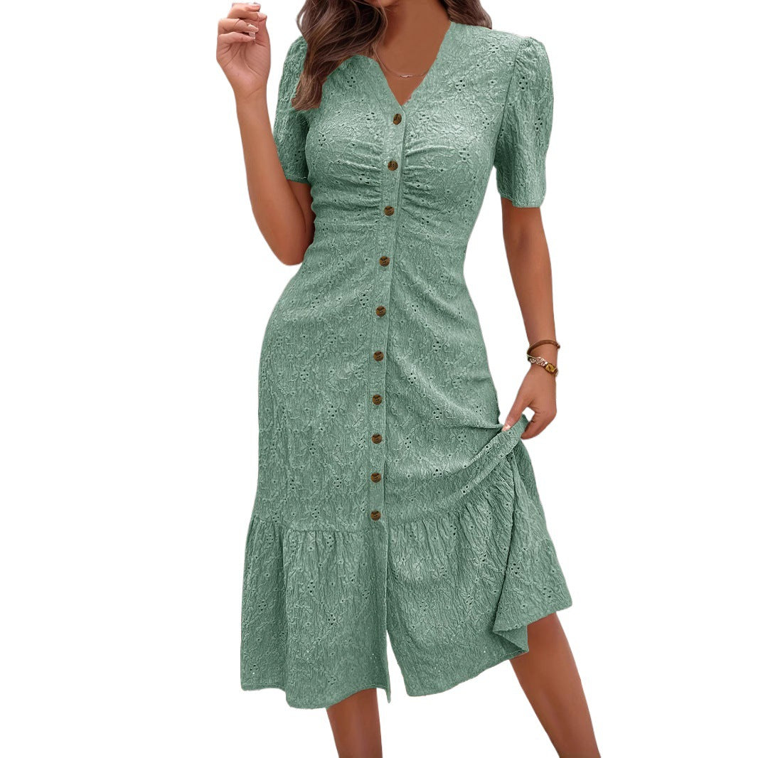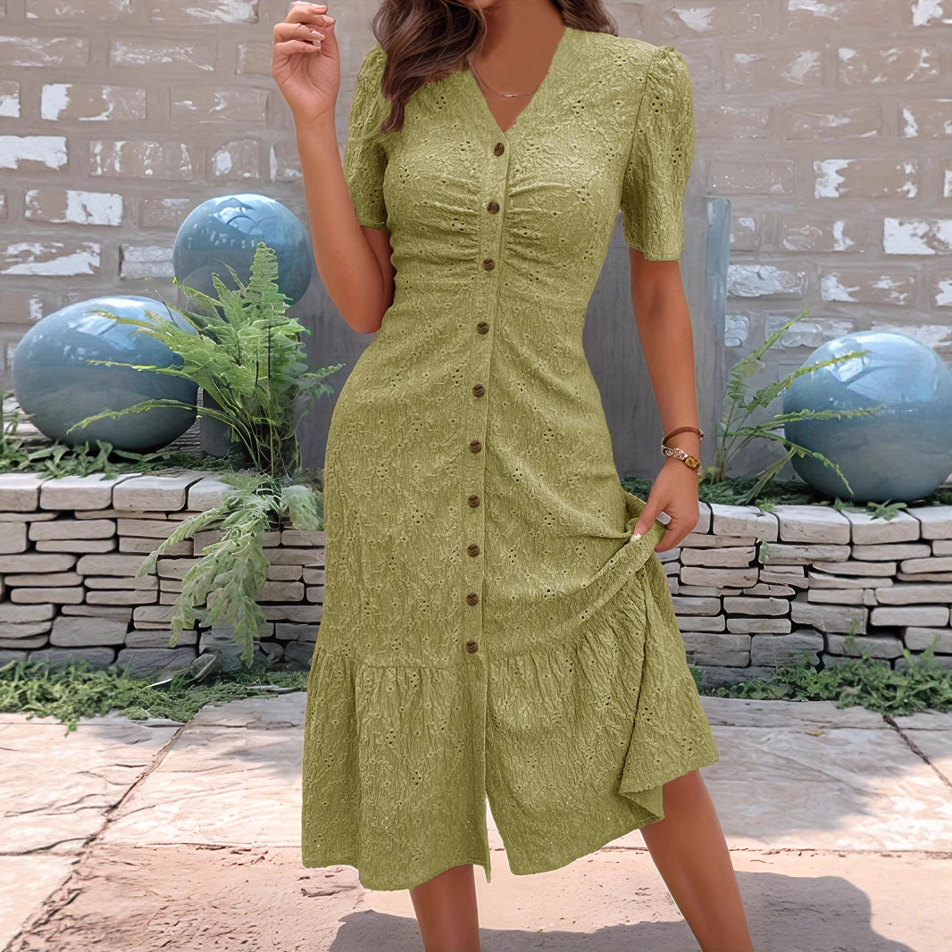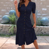 💃 Kadın şık kısa kollu V yaka düğmeli kesim etek, konfor ve şıklığı aynı anda sunarak gardırobunuzun en sevilen parçalarından biri olacak.