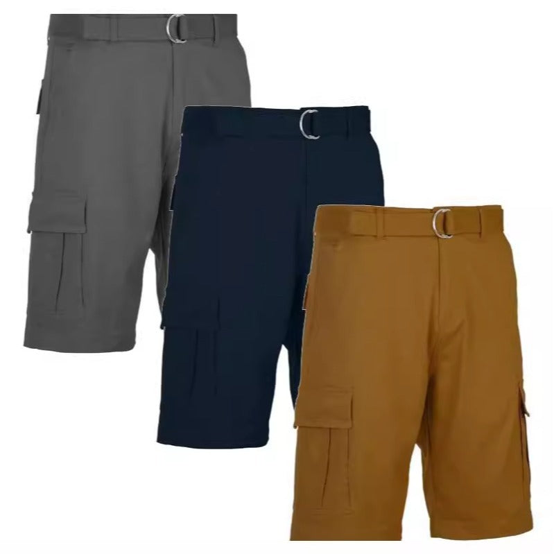 Erkek Klasik Kemerli Pamuklu Streç Kargo Cepli Şort