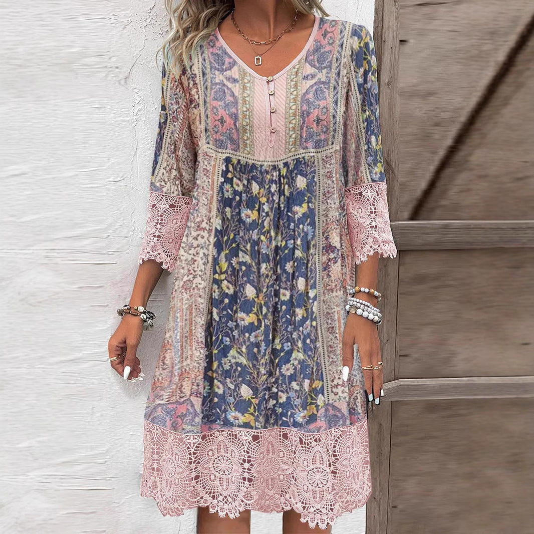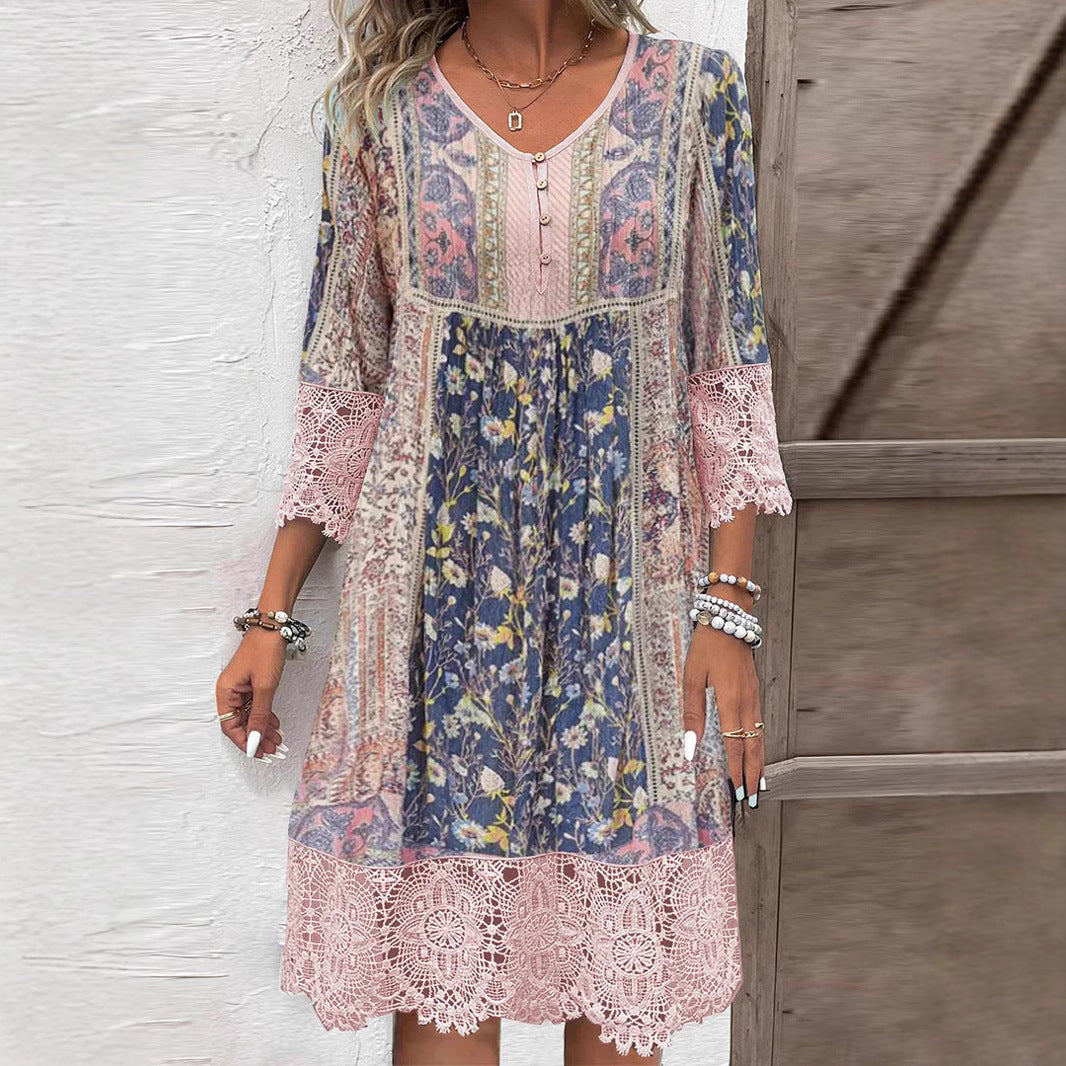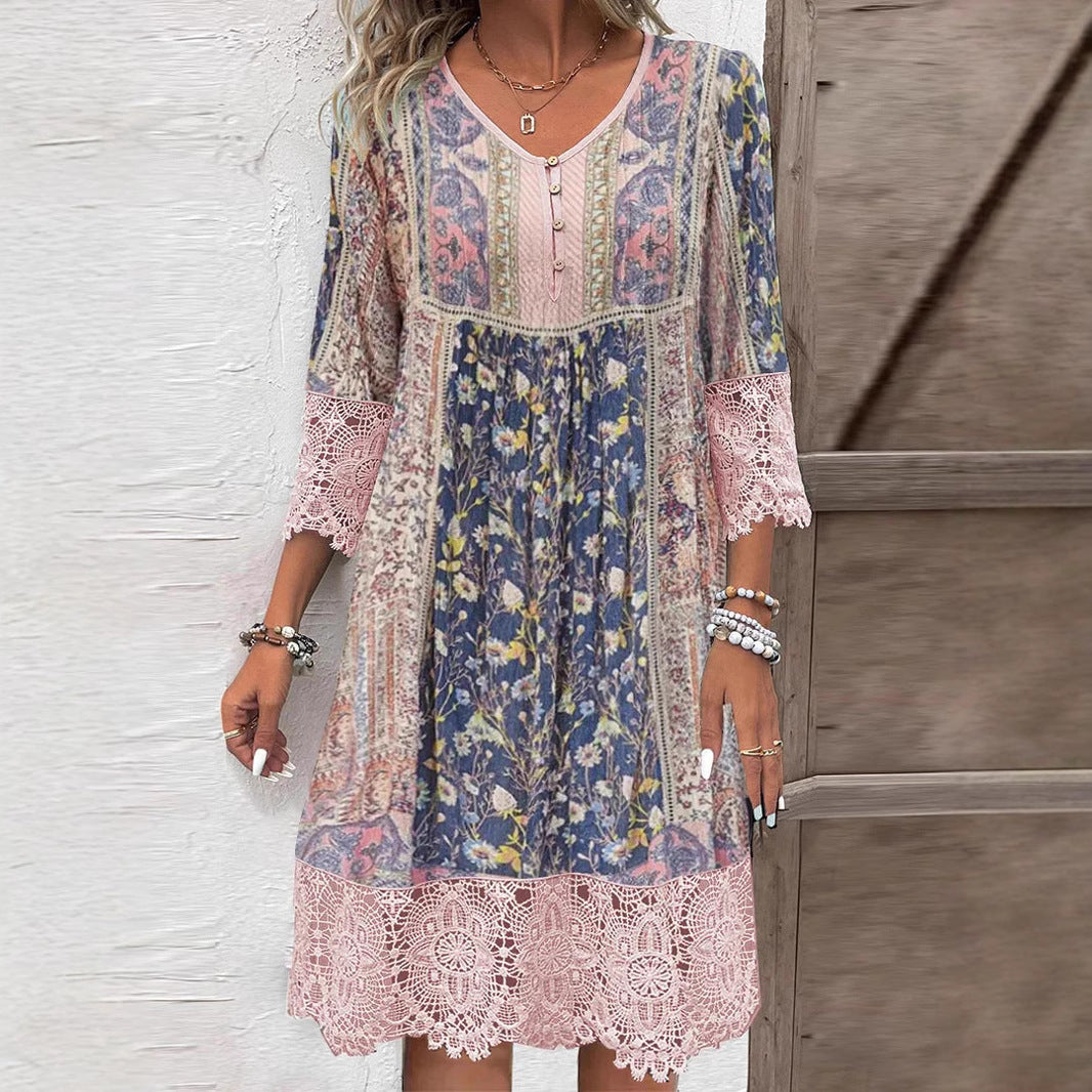 Vintage Baskılı Dantel Elbise – Zamansız detaylarla klasik zarafet