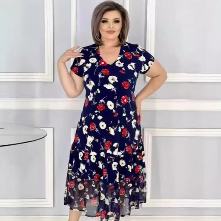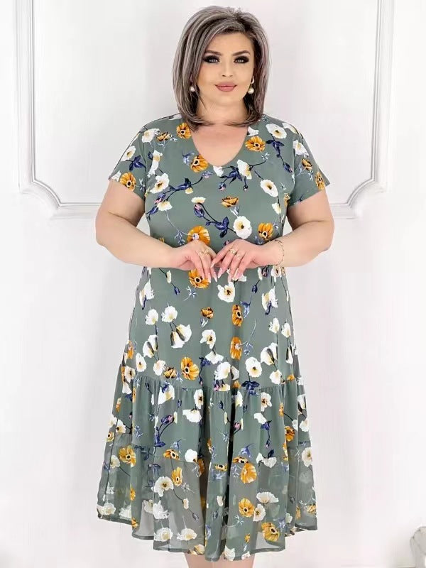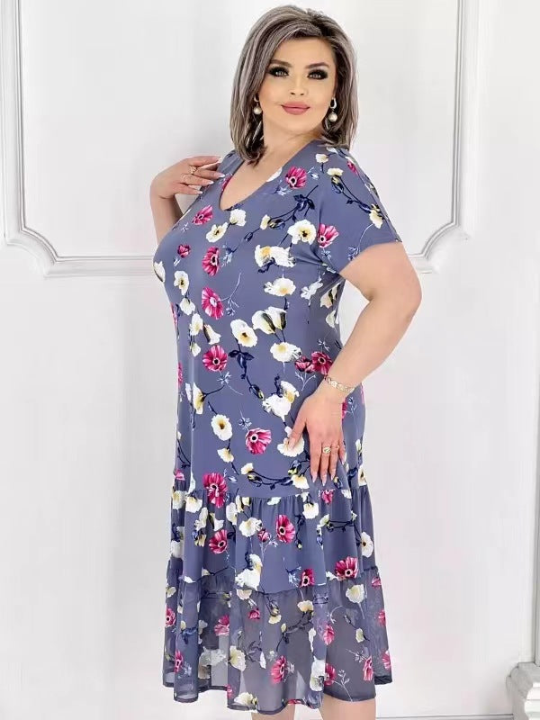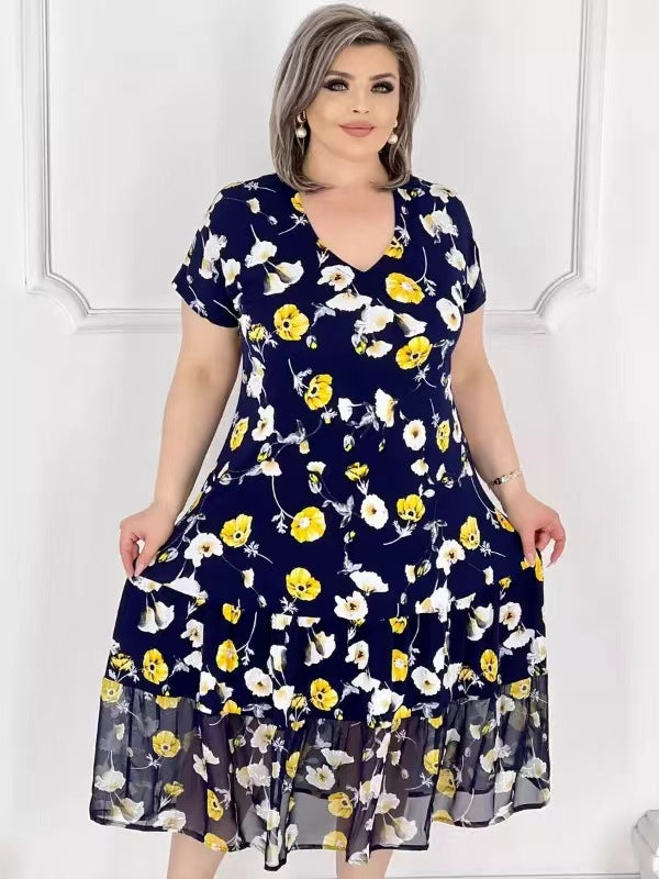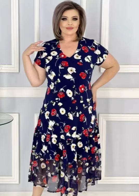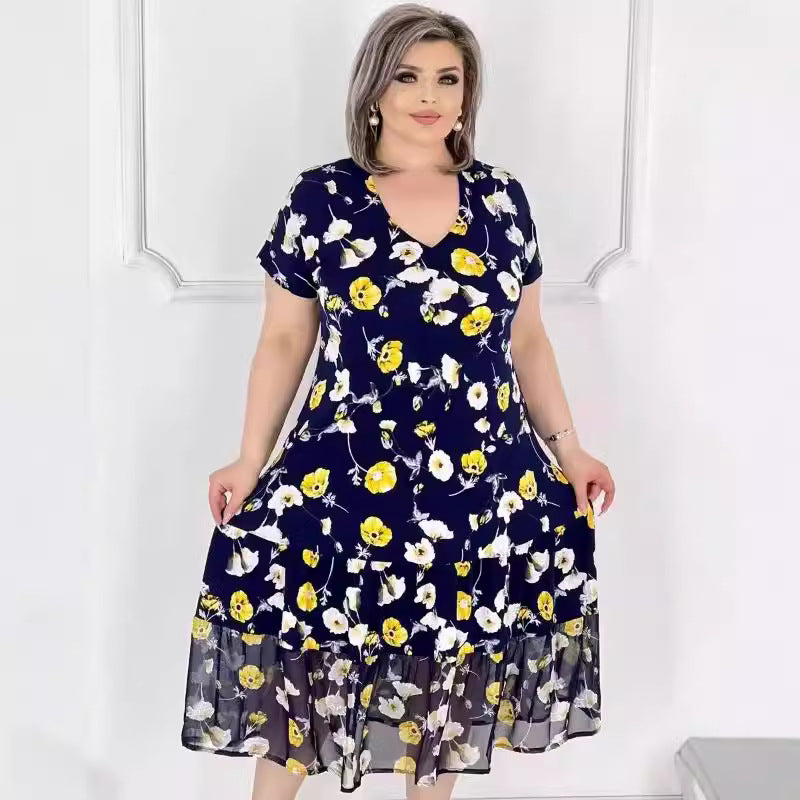 V yakalı ve çiçek desenli modern kadın elbiseleri