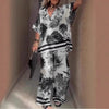 Kadınlar için V yakalı, desenli üst ve pantolonlu, bol, günlük takım elbise