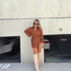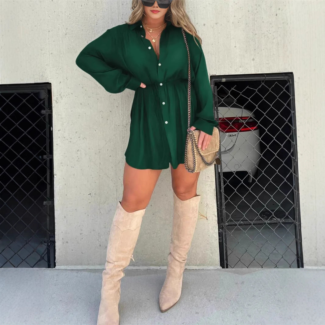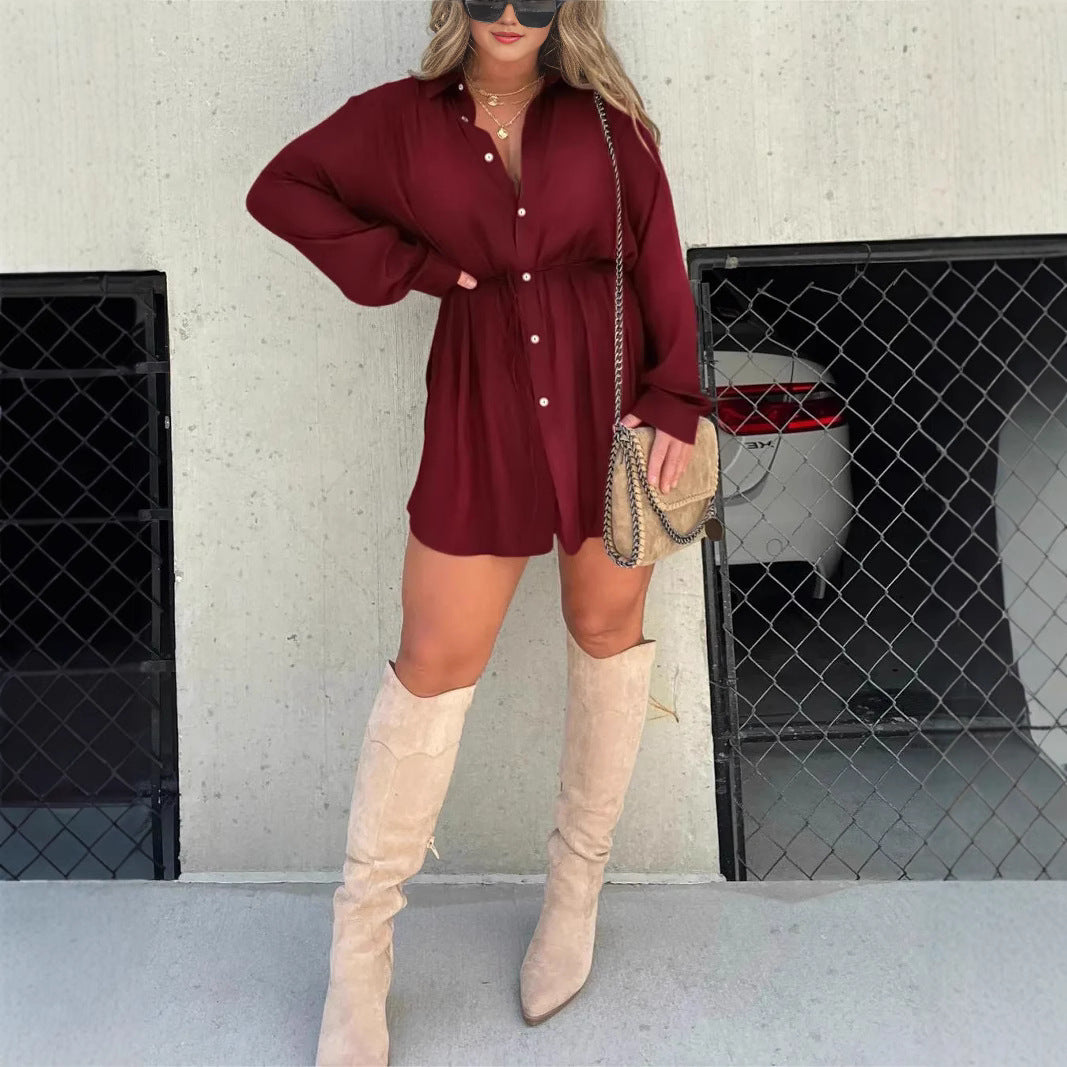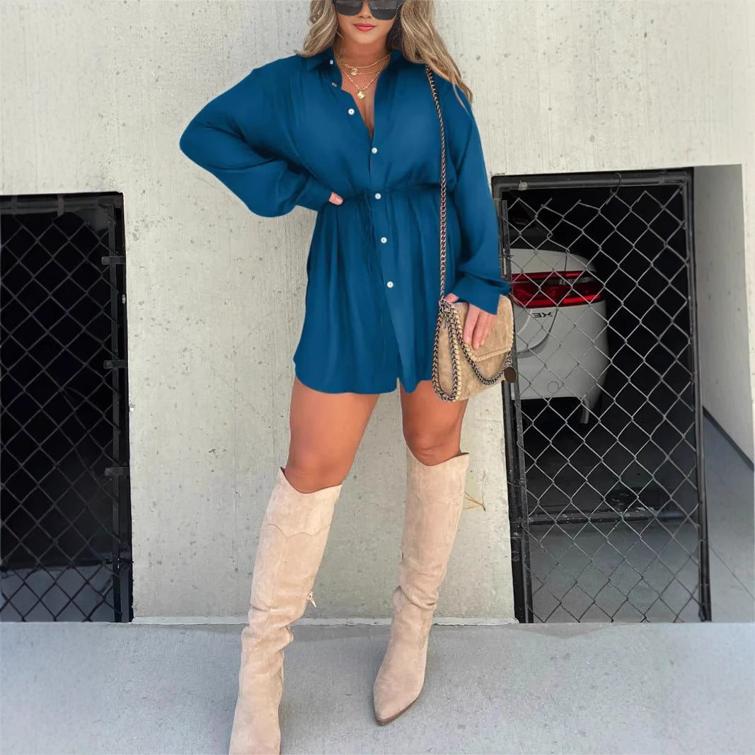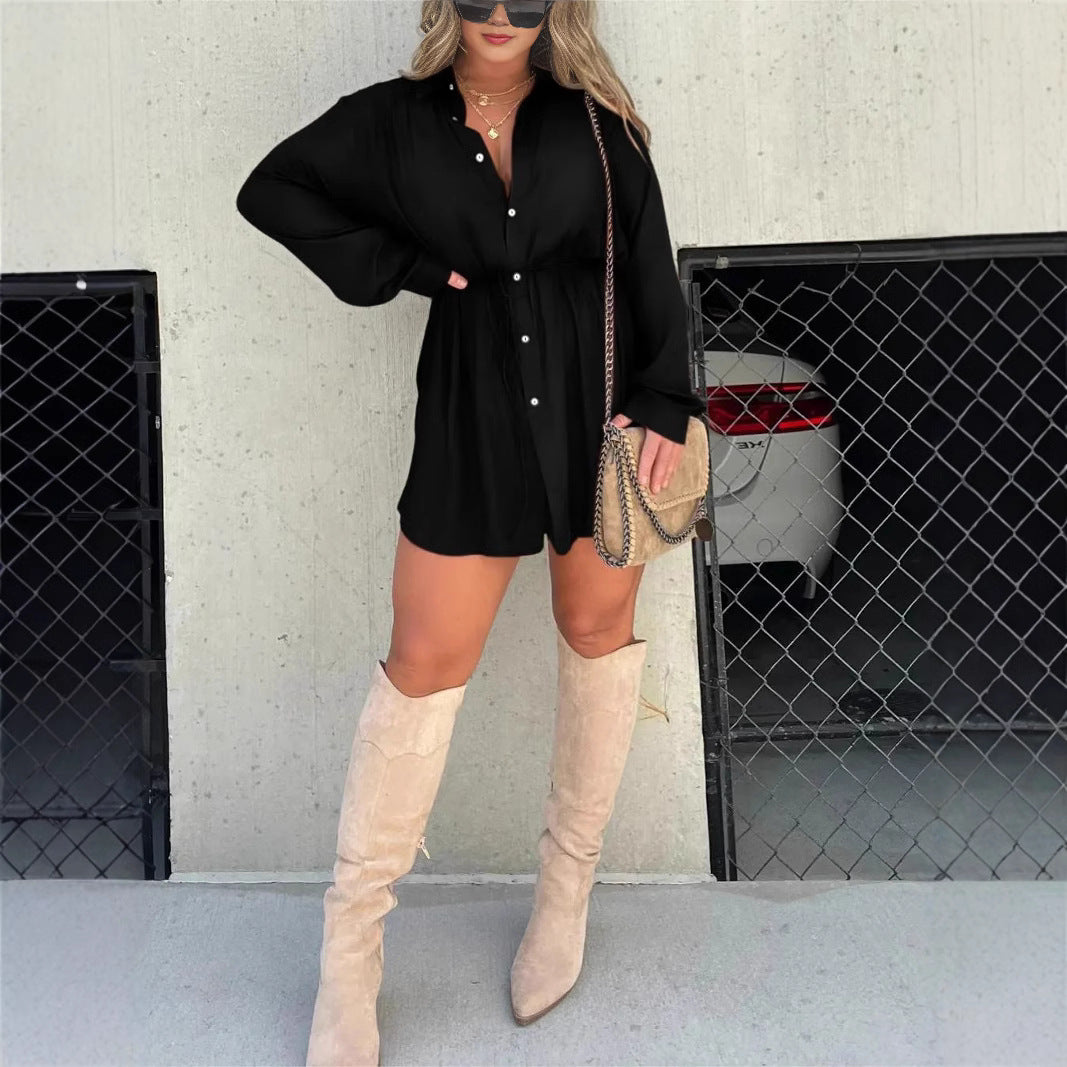 Moda düz renk uzun kollu gömlek tulum