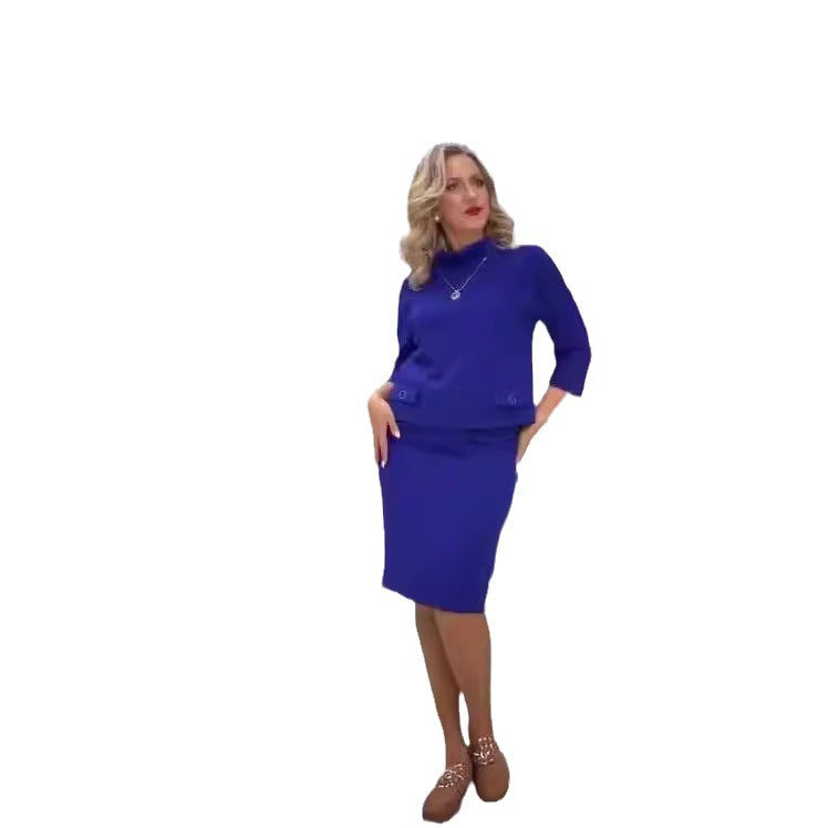 Fermuarlı şık üst, dar kesim kısa etek, dar kesim iki parçalı takım elbise