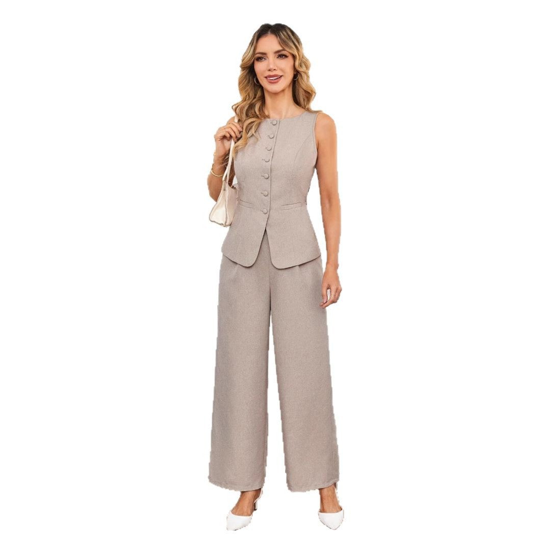 Kadınlar için geniş paça pantolon + kolsuz üst (belden bağcıklı tasarım) takım elbise