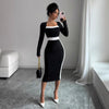 Fransız kare yakalı seksi dar kesim uzun elbise