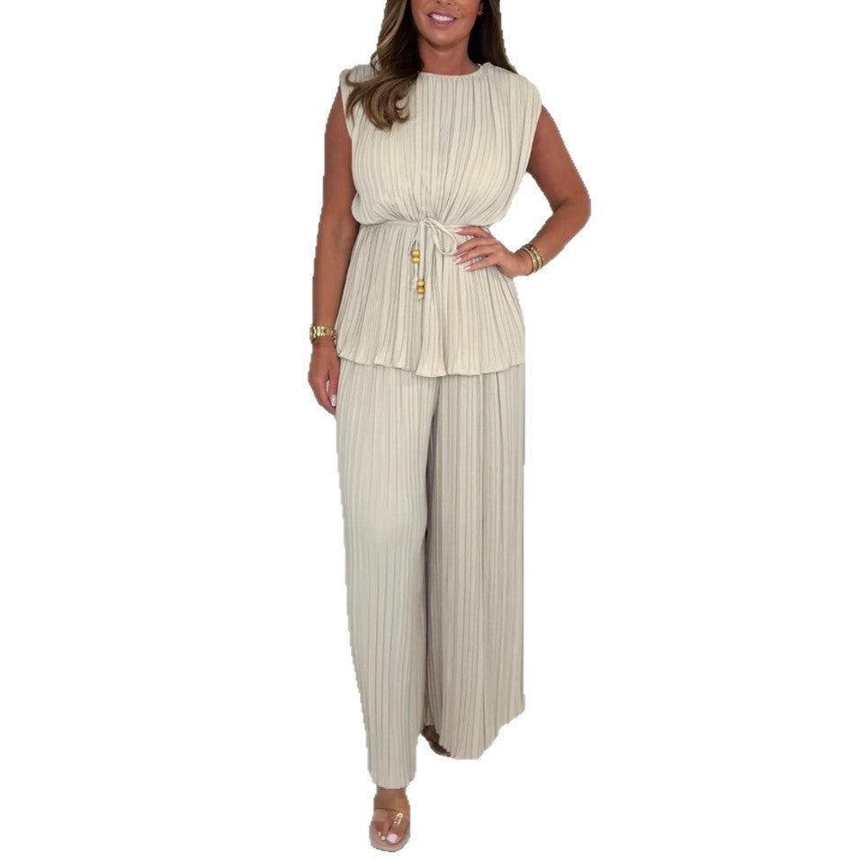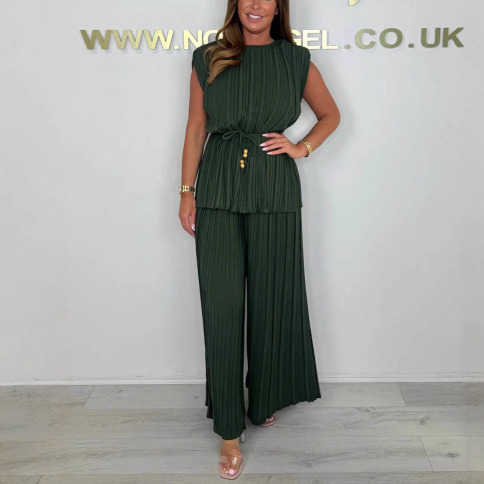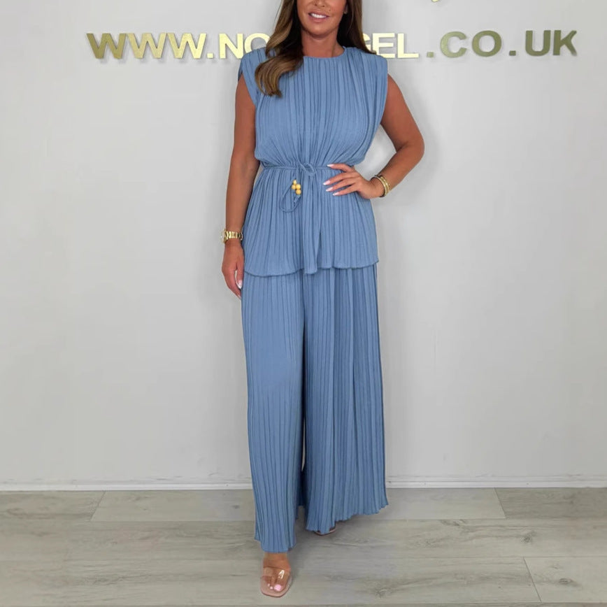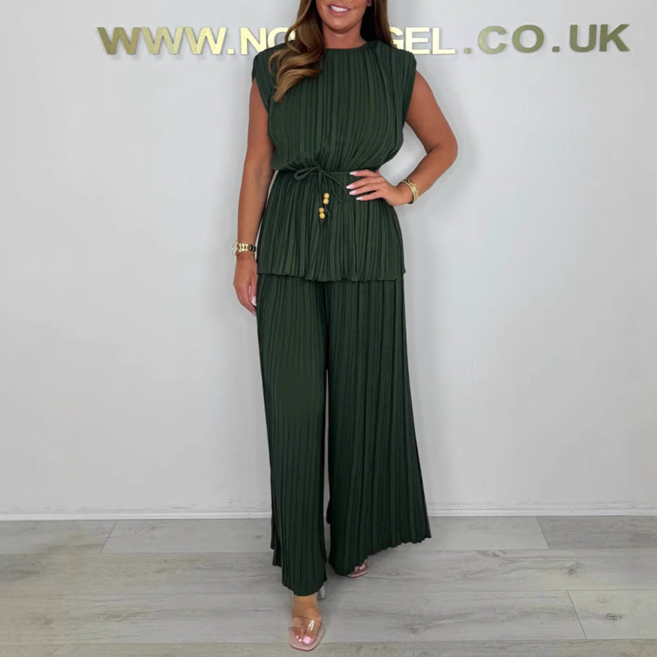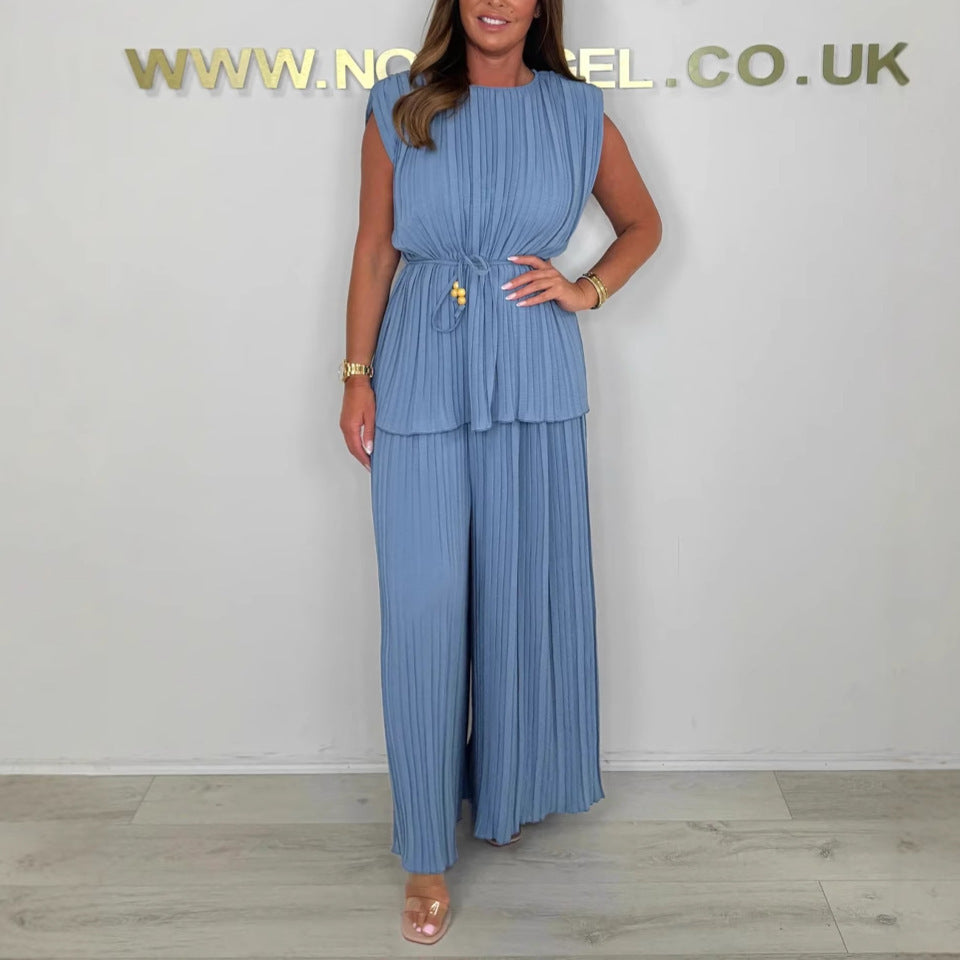 Paket İçeriği: 1 * Kadın Kolsuz Kemerli Üst ve Uzun Pantolon Takımı