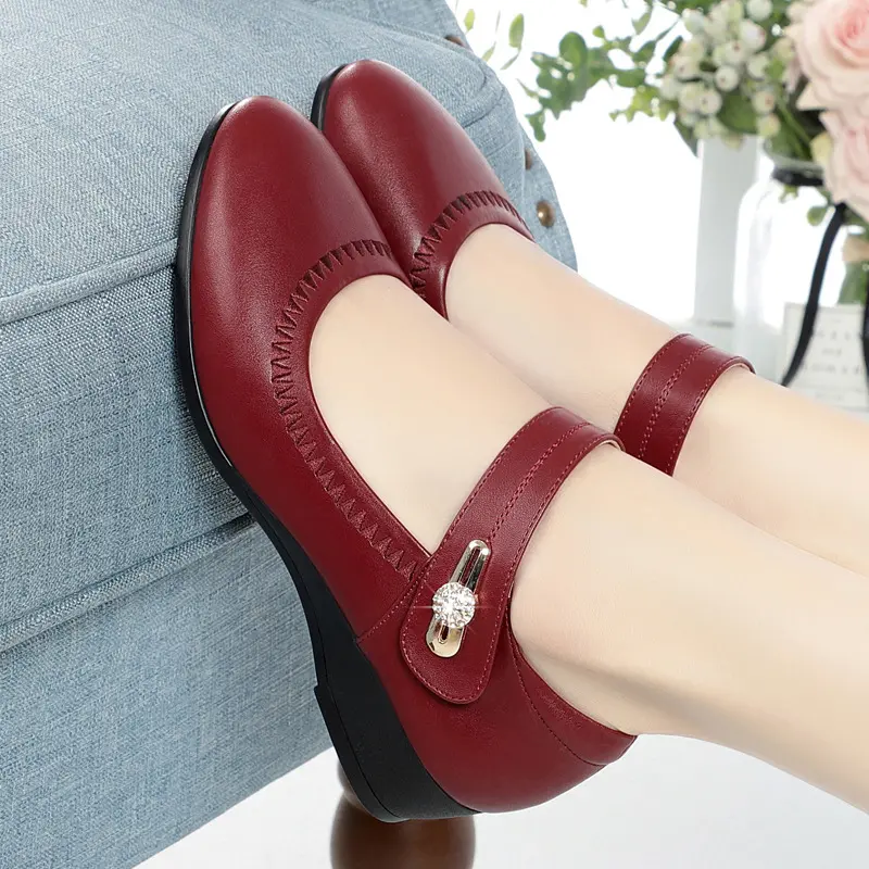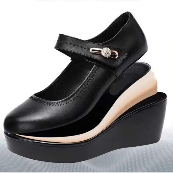 【35-43】Anneler için yumuşak tabanlı, kaymayan deri yüksek topuklu ayakkabılar