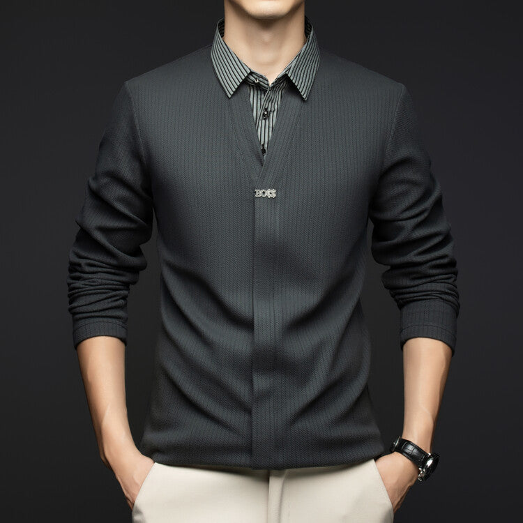 👕 Erkekler İçin Şık, Her Şeye Uyan Sahte İki Parçalı – Tek Parçada Katmanlı Stil 👕